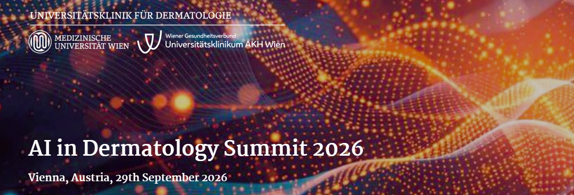 This summit will take place on 29 September 2026 in Vienna, Austria and will showcase the latest developments in artificial intelligence in dermatology. We expect renowned speakers from around the world, who will present their most recent findings and innovations. The goal is to create an inspiring environment for knowledge exchange, networking, and innovation. Join us in shaping new impulses for the digital future of dermatology. Fur further information please visit the website.